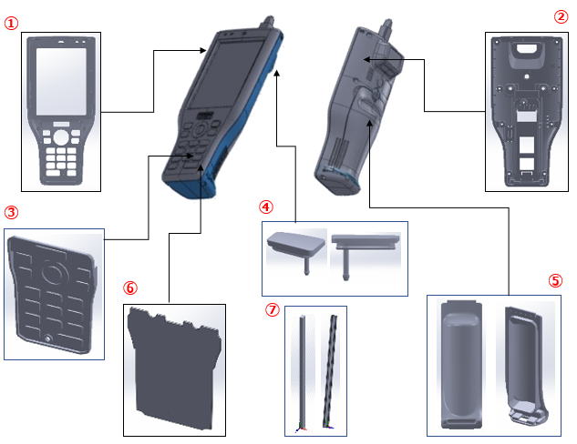筐体設計の着手段階からお客様と共同にて防水仕様を満足する筐体全体の設計が可能です。(ハンディーターミナルの例)