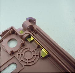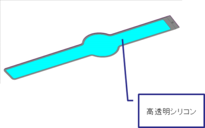お客様の加飾品の表現を損なうことのない透明性の非常に高いシリコンを使用した成型品の提供が可能です。(ウェアラブル製品の例)