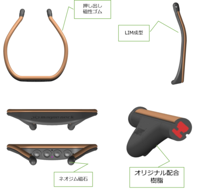 形状の保持力に長けている樹脂材を用いることにより、体にフィットする製品の提供が可能です。(健康グッズの例)