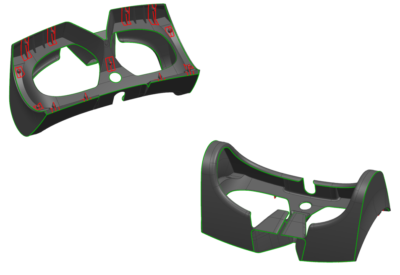 複雑な形状の成型をゴムを用いて1回のプレスで製造することが可能です。(VR製品の例)