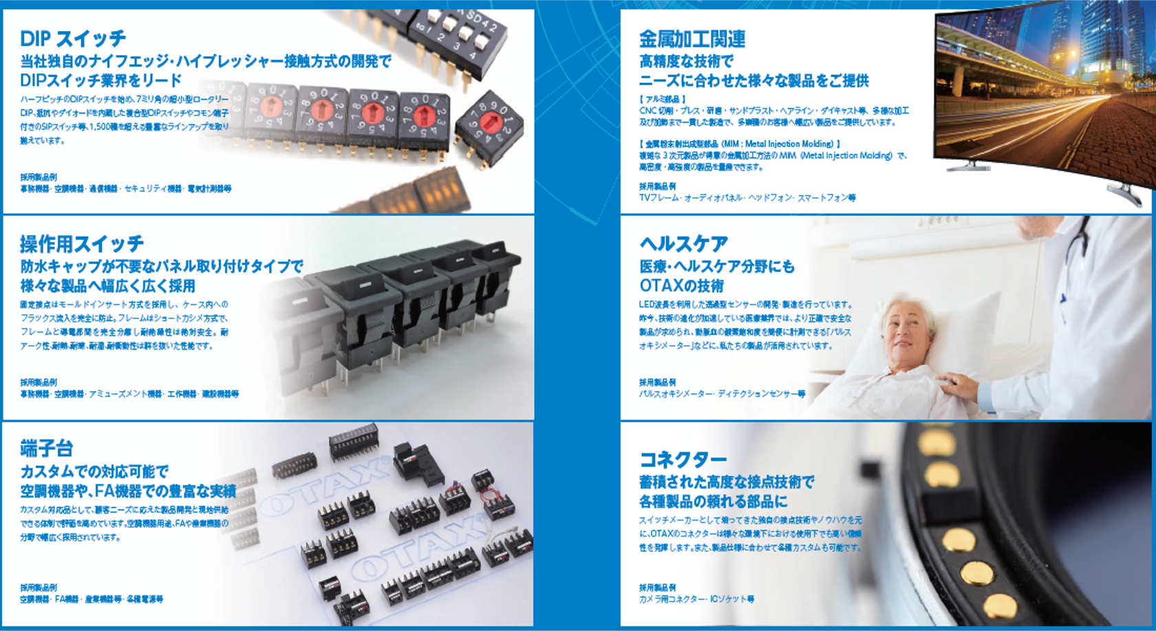 オータックスはDIPスイッチ、操作用スイッチで多くの製品ラインナップを有しています。また、端子台、コネクターについてはカスタム仕様にてご対応しています。