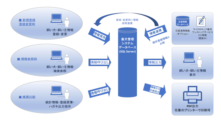 システム標準化後も、データファイル連携により住基情報と飼い主情報間のデータ連携を可能にします。