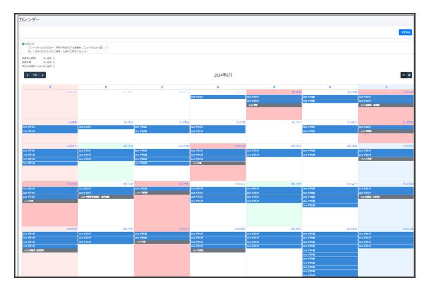 予約受付画面(管理者様向け)