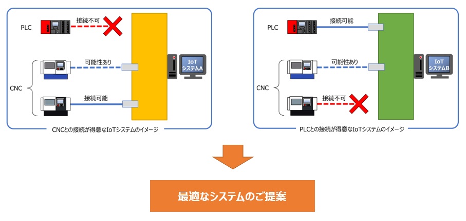 お客様の工場に導入されている設備が、生産現場向けIoTシステムへ接続できるか判定するサービスです。