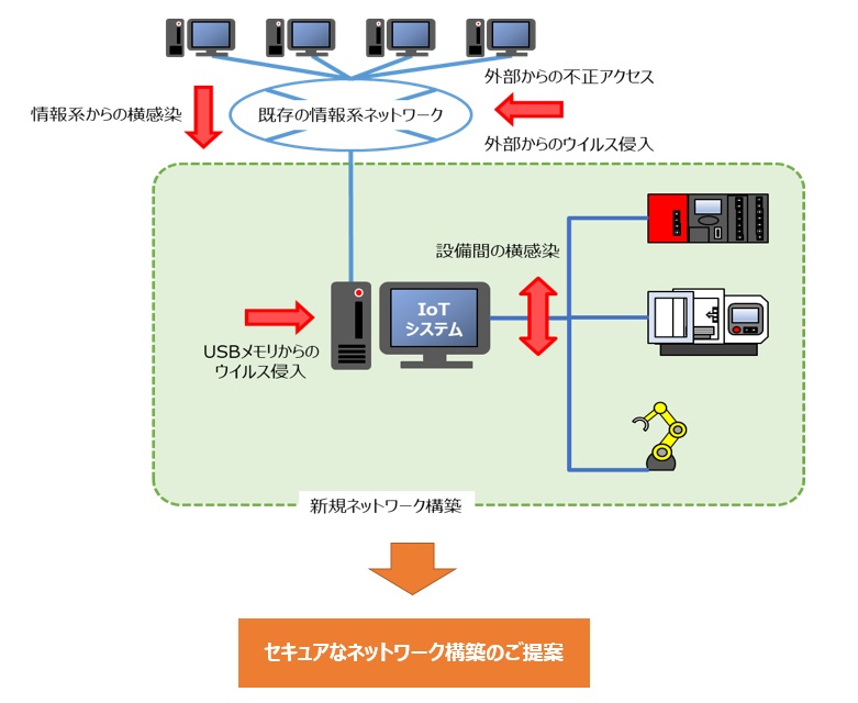 適切なIoTシステム、旧型設備の接続方法、ネットワーク構築に至るまで、IoT化をトータルにご提案いたします。