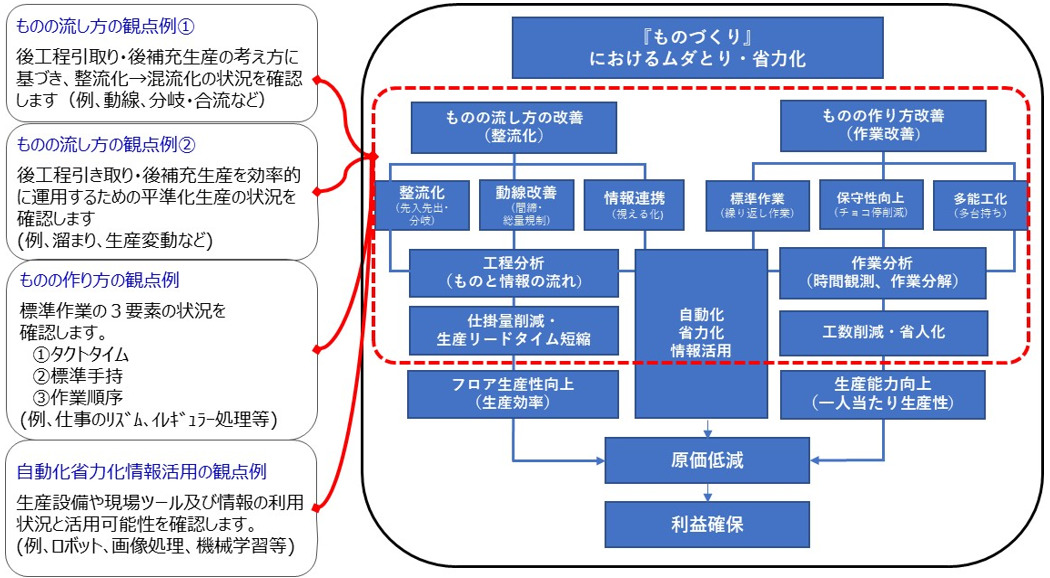 | スマート化の内容、対象範囲、レベルを明確にする | スマート化の内容や、スマート化の対象とする、ものづくりのプロセス、業務範囲、規模、レベル、コスト等明確に定義する。必要に応じて、外部の専門家などから助言を得る。 | |