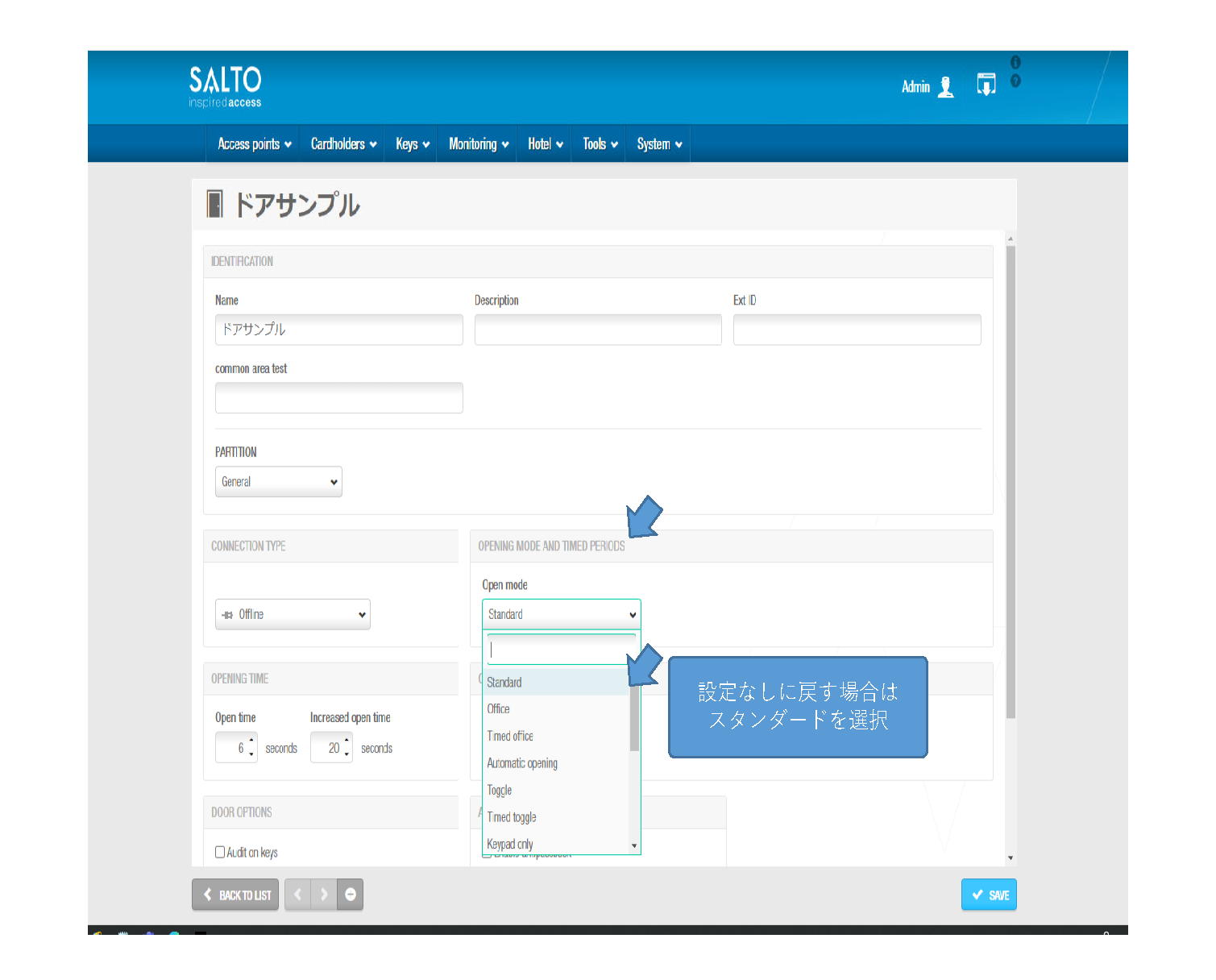 確認できます。オフラインSALTO電子錠の場合でもカードを経由して