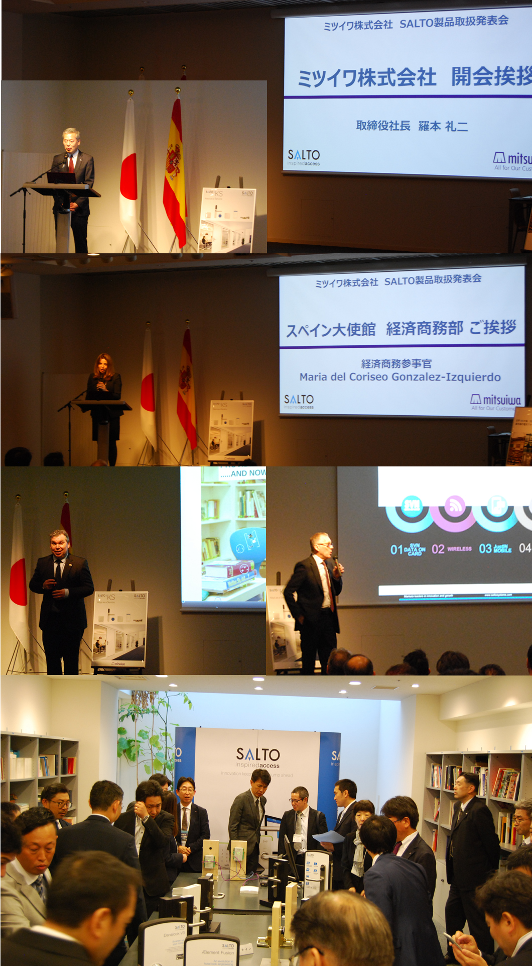 4月17日、ミツイワ株式会社はスペイン大使館会場にてスペインに本社を置くサルトシステムズ社と代理店契約を締結し、日本市場に向け、配線工事を不要としたワイヤレス&キーレスなアクセスコントロールソリューションのサーバ型「SALTO XS4」とクラウド型Keys as a Service「SALTO KS」を5月1日より発売を開始するプレス発表をさせて頂きました。